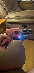 Pivoting handle for tight workspaces: This pink cordless screwdriver includes forward, reverse and locked positions. Its two-position handle and LED light enable better usage in dark or confined areas.