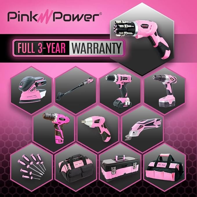 All inclusive screwdriver set: Each electric screwdriver set includes (1) electric screwdriver with attached bits, (1) pink magnetic bubble level, and 1 charger. This is a great addition to any hand tool kit.
