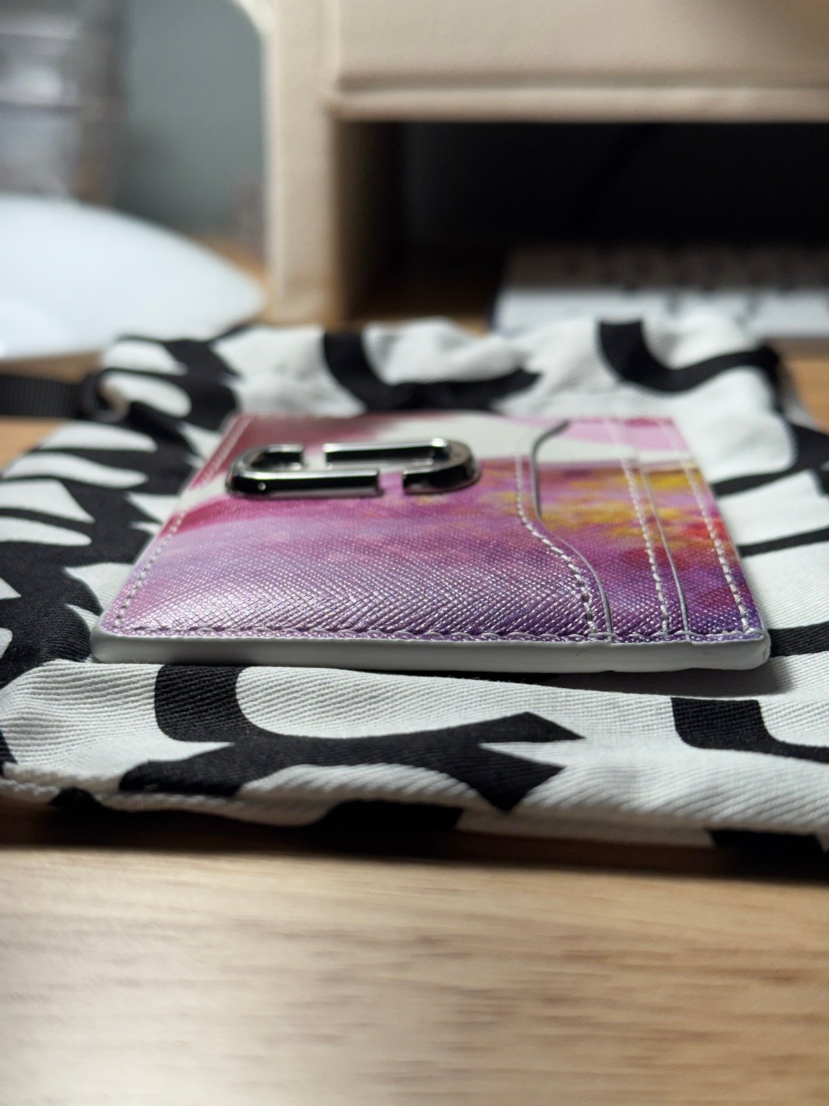 Card case is multi white design. This card case is in perfect condition. Has the silver Marc Jacob's snapshot logo on front with 2 cart slots. Back of case has 2 cart slots and the very top of case has a slot.