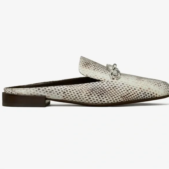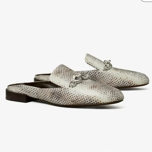 Tory Burch® Classic and refined, a loafer-style mule is crafted of pebble-grained leather with a signature dual-dragon-head ornament adding an opulent touch.1" heel Leather upper, lining and soleClosed-toe design.Leather lining.Lightly padded footbed.Leather sole.Smoke free and pet free home See pics for details