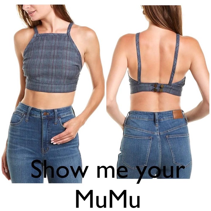 Color/Pattern - Schoolhouse Plaid Approximately 14In From Shoulder To Hem Model Is 5'11 And Is Wearing A Size Small. Measurements May Vary Slightly By Size. Design Details - Open Back, Denim Design Button Closure 97% Cotton, 3% Spandex Dry Clean Only Made In The Usa