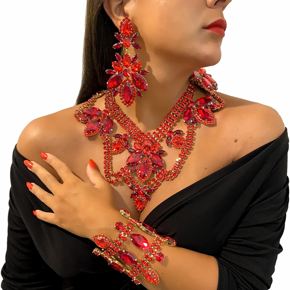 Name:Stonefans Leaf Rhinestone Necklace Earrings Set Accessories for Women Drag Queen Statement Bling Crystal Luxury Jewelry Sets